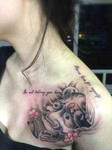 般若与鲤鱼和英文大结合的半甲纹身图片