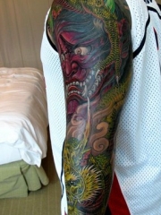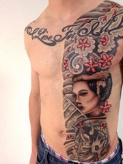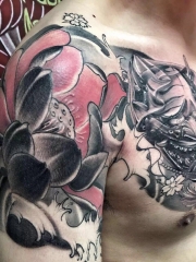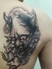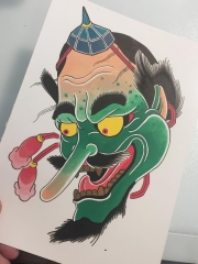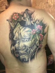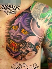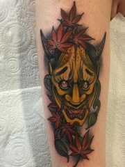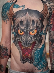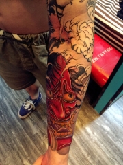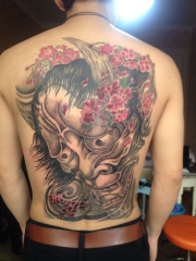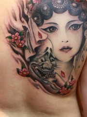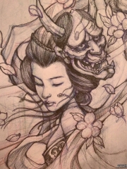 彩色的日本艺伎纹身樱花纹身般若面具纹身图片