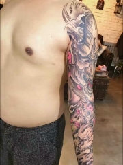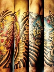 小臂半袖漂亮的鲤鱼般若和船锚纹身图片