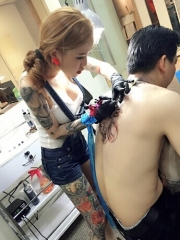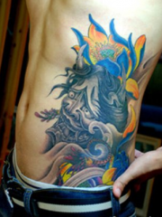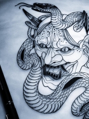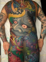 霸气般若与蛇菊花大满背彩绘纹身图片