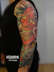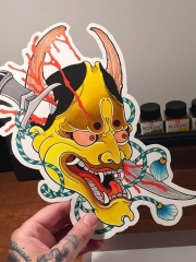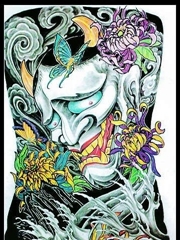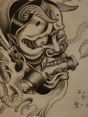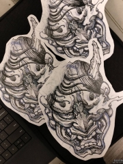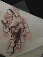 黑色鬼面妖怪面具般若纹身图案来自纹身师西蒙