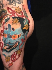 大腿到腰部个性独特的般若纹身图案