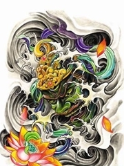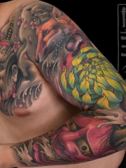 花臂彩绘般若鲤鱼纹身图案