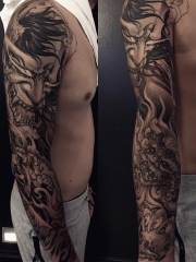 般若与花妓结合的花臂纹身图案