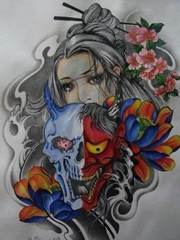 日系女子和般若手稿图案