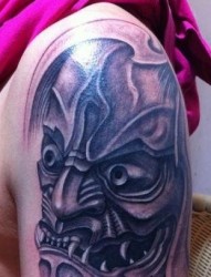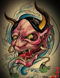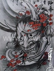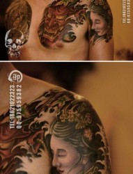 一幅经典又漂亮的半甲艺妓与般若纹身图片