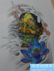 般若纹身图片:彩色般若莲花樱花纹身图案