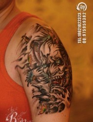 般若纹身图片:超霸气彩色般若莲花纹身图案