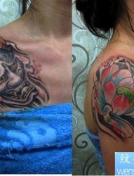 南京纹身图片展示:一幅美女的半甲般若与莲花纹身图片