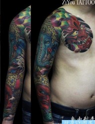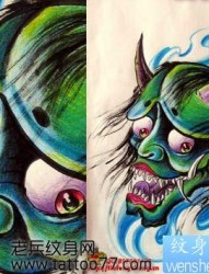 般若纹身图片:山鬼般若莲花纹身图片图案
