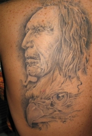 背部男性头像和鹰头纹身图案