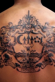 背部狮子徽章星星月亮纹身图案