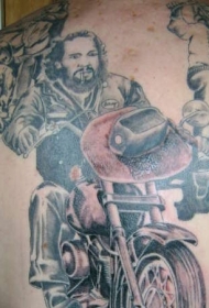 背部蓝色的兰花和黑色藤蔓纹身图案