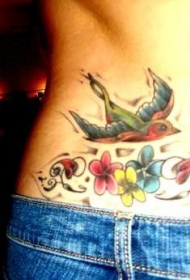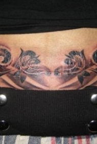 腰部许多深蓝色的蝴蝶藤蔓纹身图案