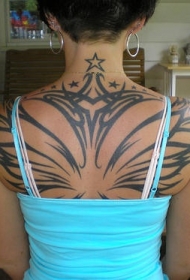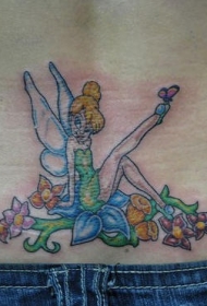 腰部黑色美丽的蝴蝶花朵纹身图案