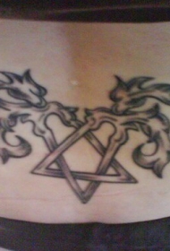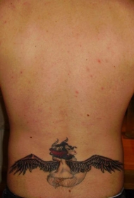腰部迷人的女孩与恶魔翅膀纹身图案