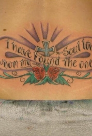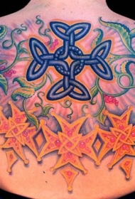 背部色彩丰富的皇冠与锁和花朵纹身图案