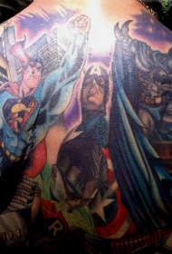 背部卡通彩绘蝙蝠侠与英雄纹身图案