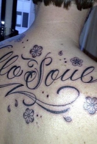 背部装饰藤蔓花朵字母纹身图案