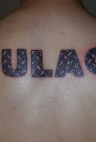 背部黑色字母花体纹身图案