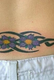 腰部紫色花朵与黑色图腾纹身图案