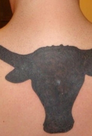 背面黑灰部落牛纹身图案