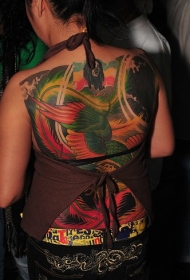 满背彩色美丽的大翅膀纹身图案