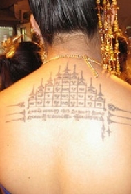 背部黑色佛教经文纹身图案