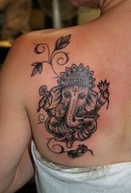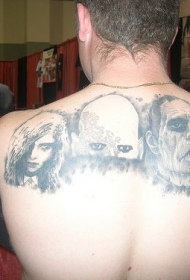背部彩色幻想耶稣坐在飞船上纹身图案