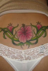 腰部彩色墨西哥骷髅与花朵纹身图案