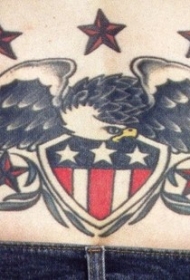 背部彩色皇冠和粉红色花朵钥匙锁纹身图案