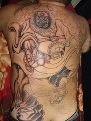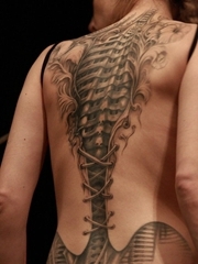 女子背部脊椎骨上一行红色的英文字纹身图片