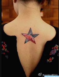 女人背部星空五角星纹身图案