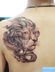 一幅背部狮子纹身图案