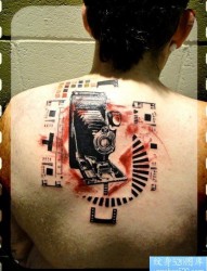 背部之特别风格照像机纹身图案