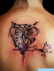 背部猫头鹰纹身作品
