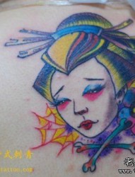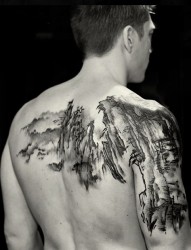 女人背部唯美的邹菊纹身图片由纹身520图库推荐