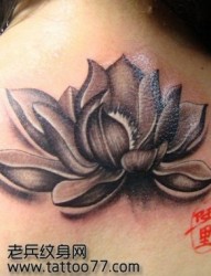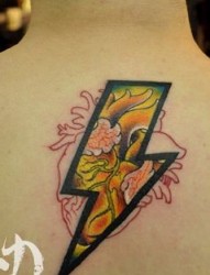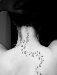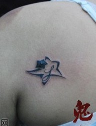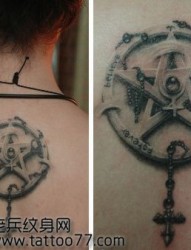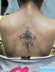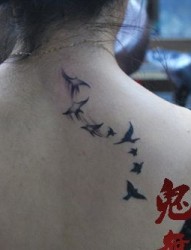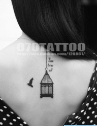 一幅潮流的女孩子背部小鸟鸟笼纹身图片