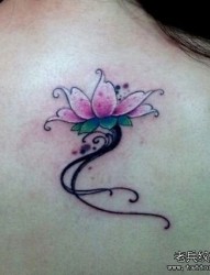 女人背部一幅唯美简单的莲花纹身图片