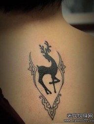 女孩子背部潮流的图腾小鹿纹身图片