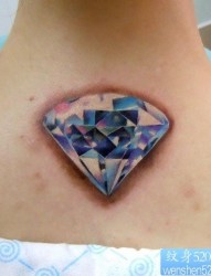 女人背部精美的彩色钻石纹身图片