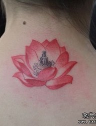 美女背部一幅红色莲花纹身图片