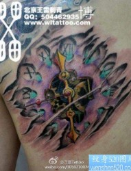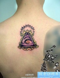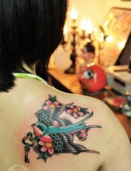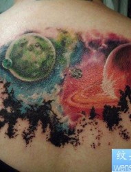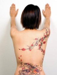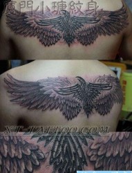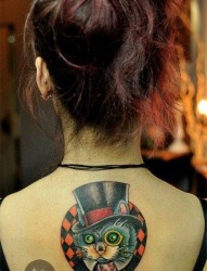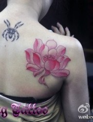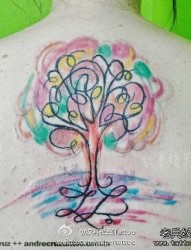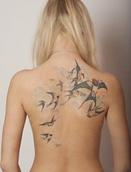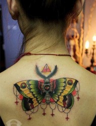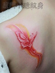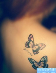 女人背部漂亮精美的彩色蝴蝶纹身图片