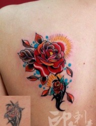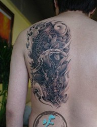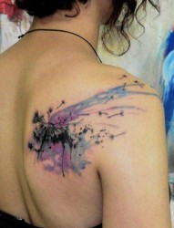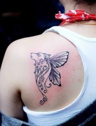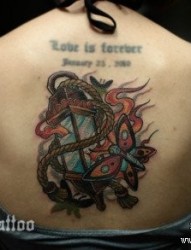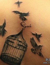 女人后背时尚经典的油灯蝴蝶纹身图片