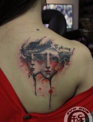 女人后背漂亮潮流的威尼斯面具纹身图片