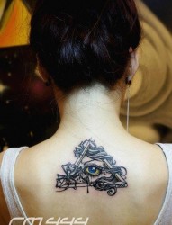 女人后背潮流经典的蜘蛛与眼睛纹身图片