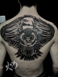 女人后背好看的狼头与蝴蝶翅膀纹身图片
