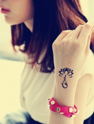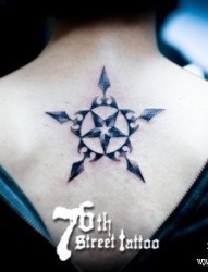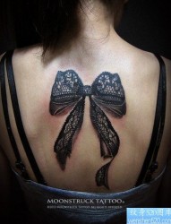 美女背部潮流性感的蕾丝蝴蝶结纹身图片