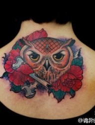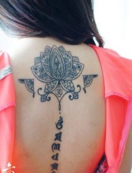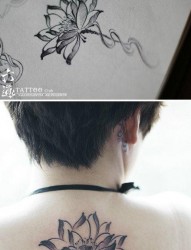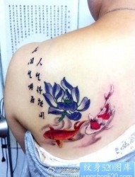 女人后背漂亮唯美的莲花鲤鱼纹身图片