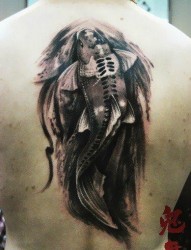 后背一幅经典漂亮的黑白水墨锦鲤纹身图片